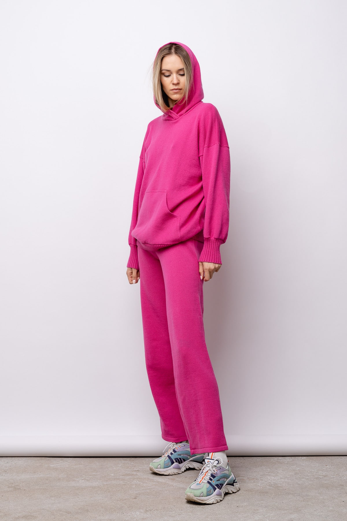 Pehme, õhulise kudumiga kapuutsiga kampsun.