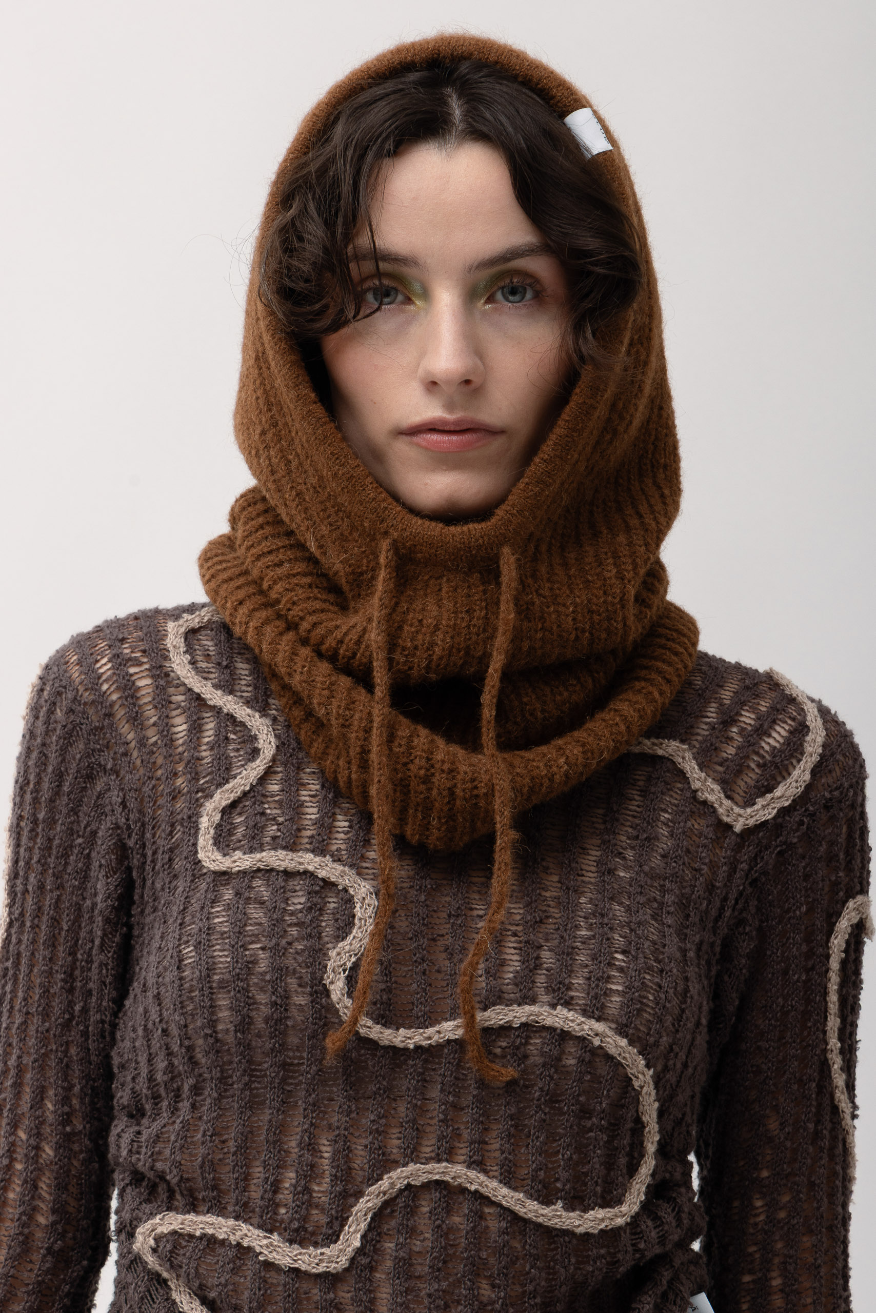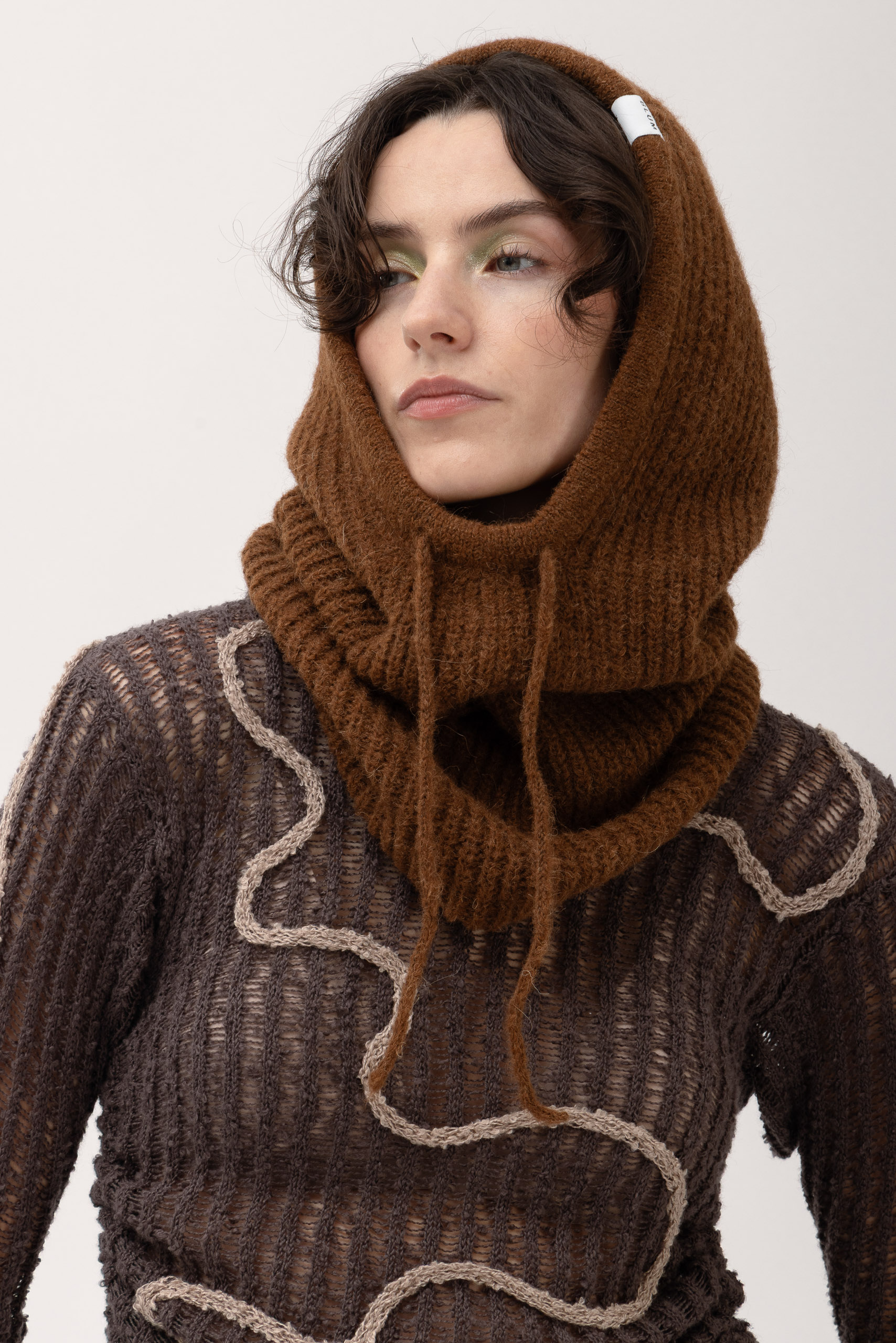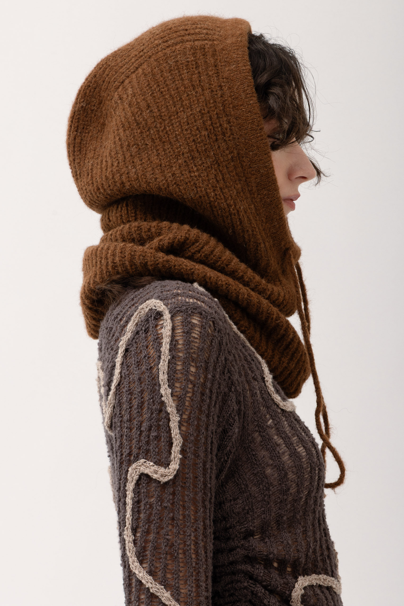Hand made from fuzzy alpaca blend yarn. Wear it solo or add it over a beanie for an extra insulating layer, changing your look instantly.