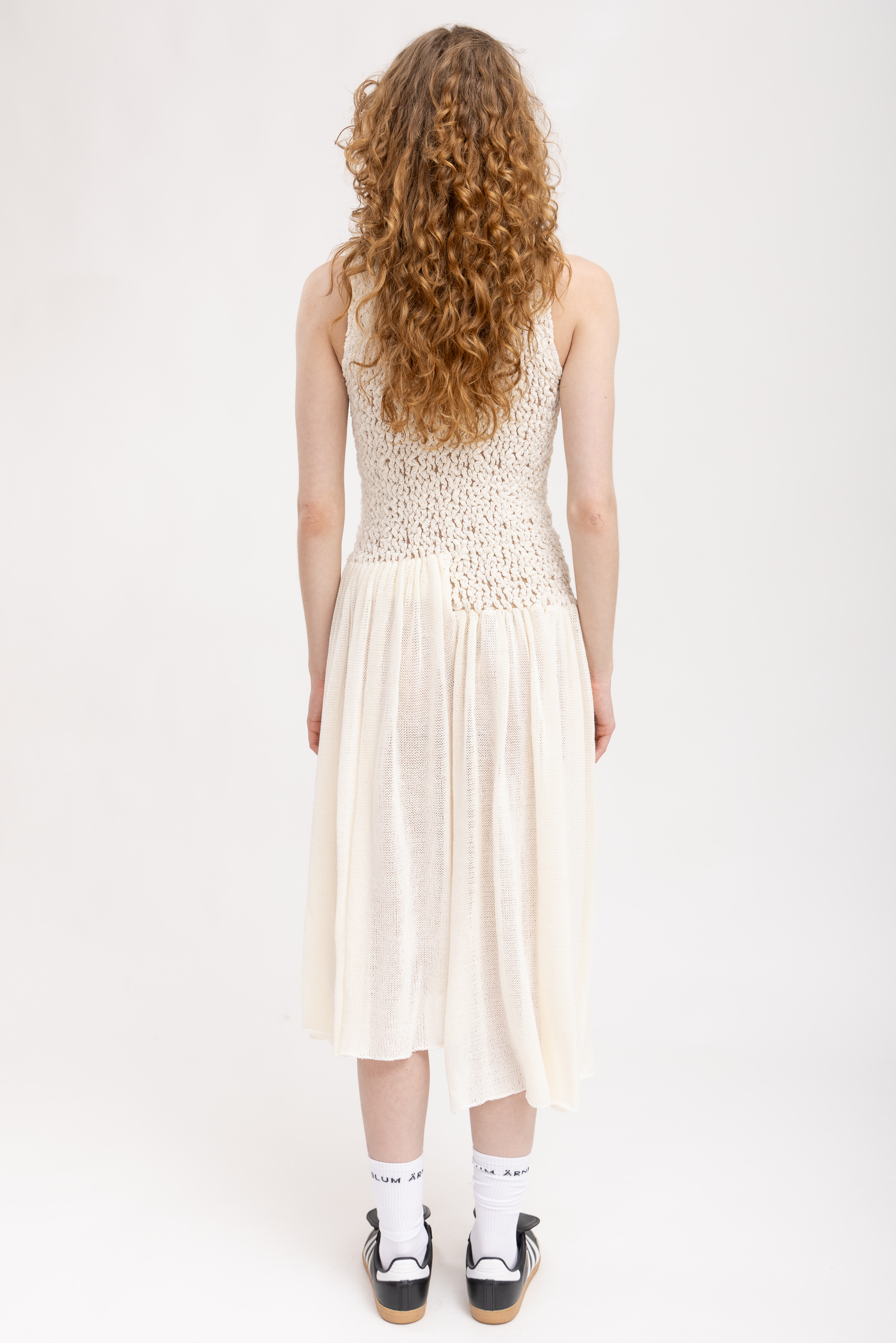 Hand made from organic cotton with stretch, shaping naturally as you wear it. A balanced silhouette that is fitted on top, and flowy at the hem.