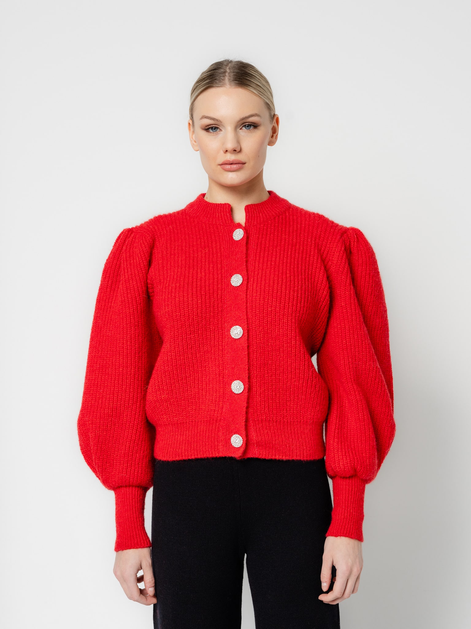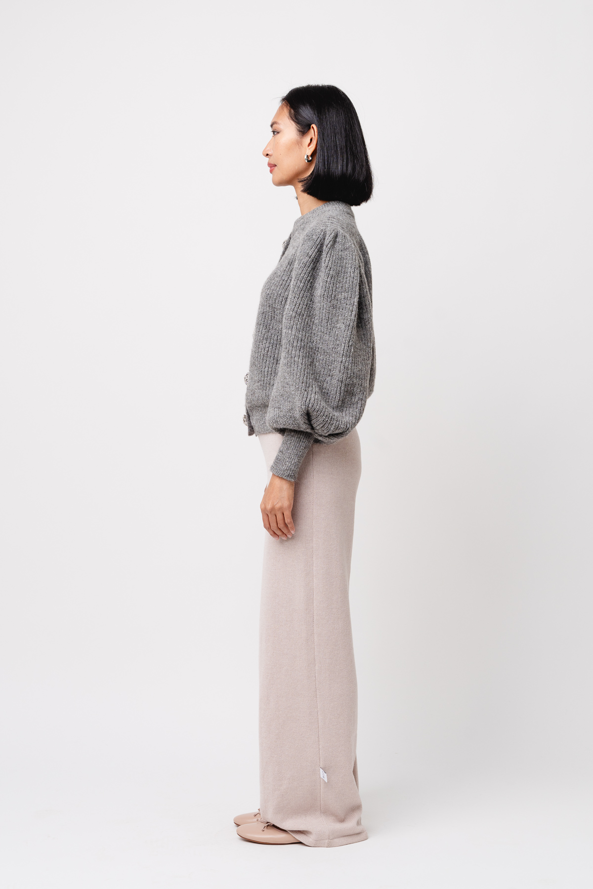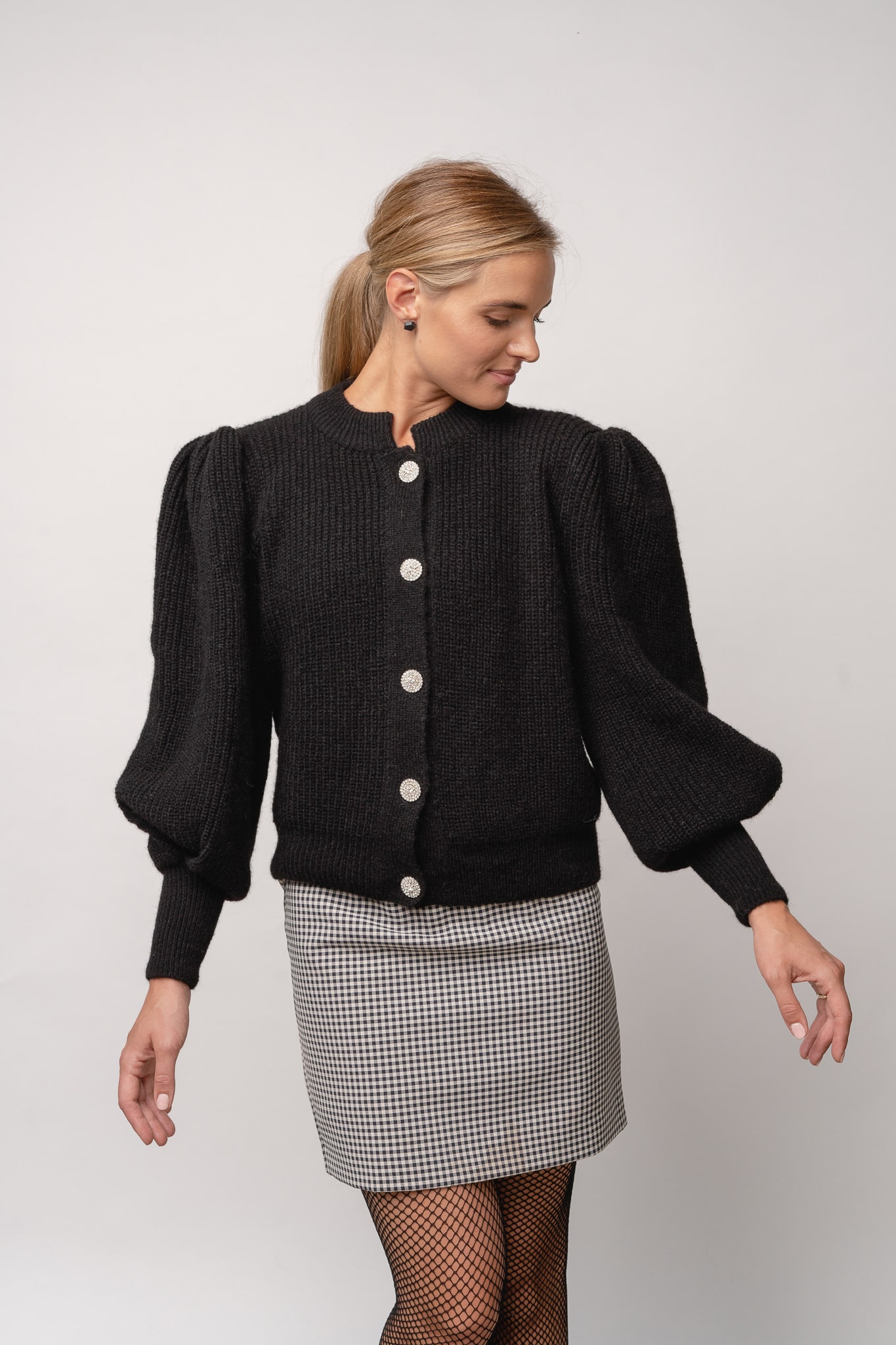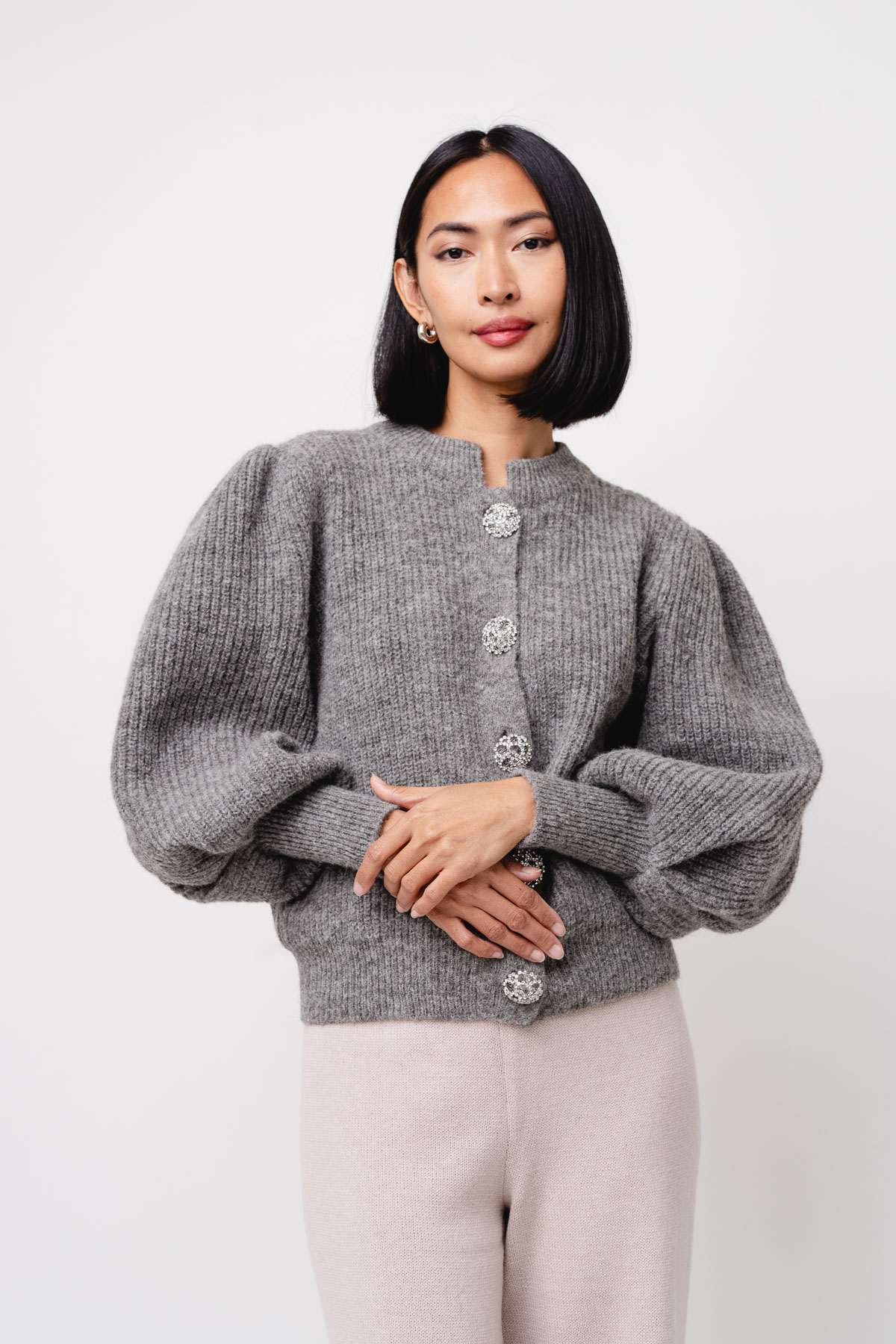Hand made from alpaca blend yarn. Voluminous sleeves, shaped silhouette, finished with statement buttons.