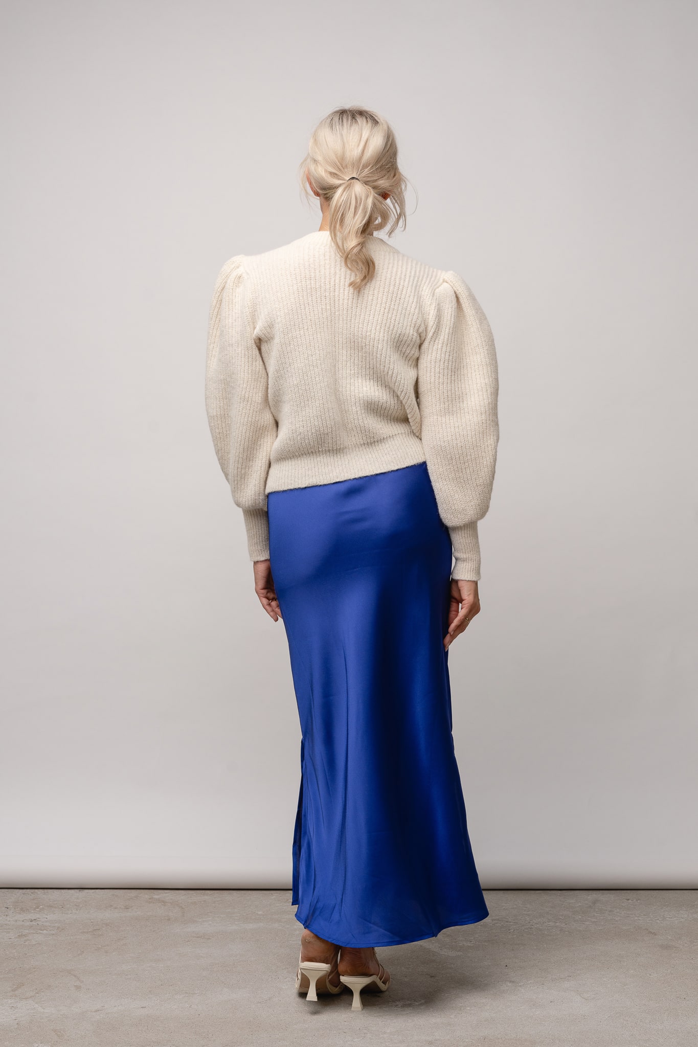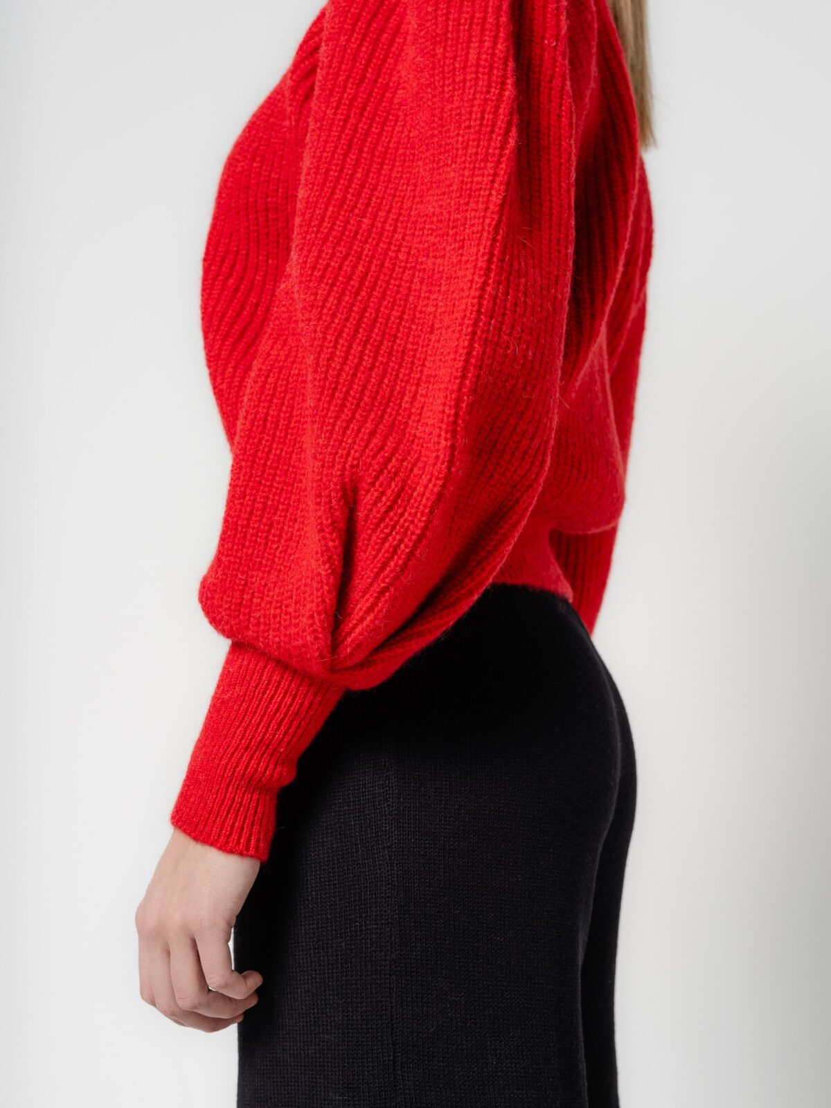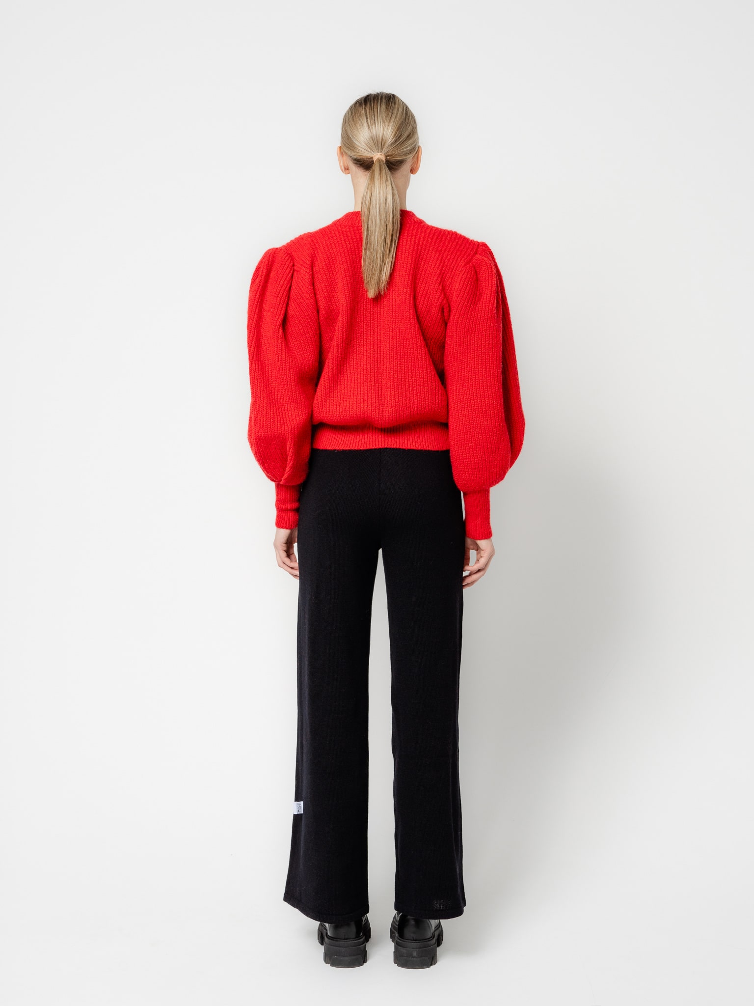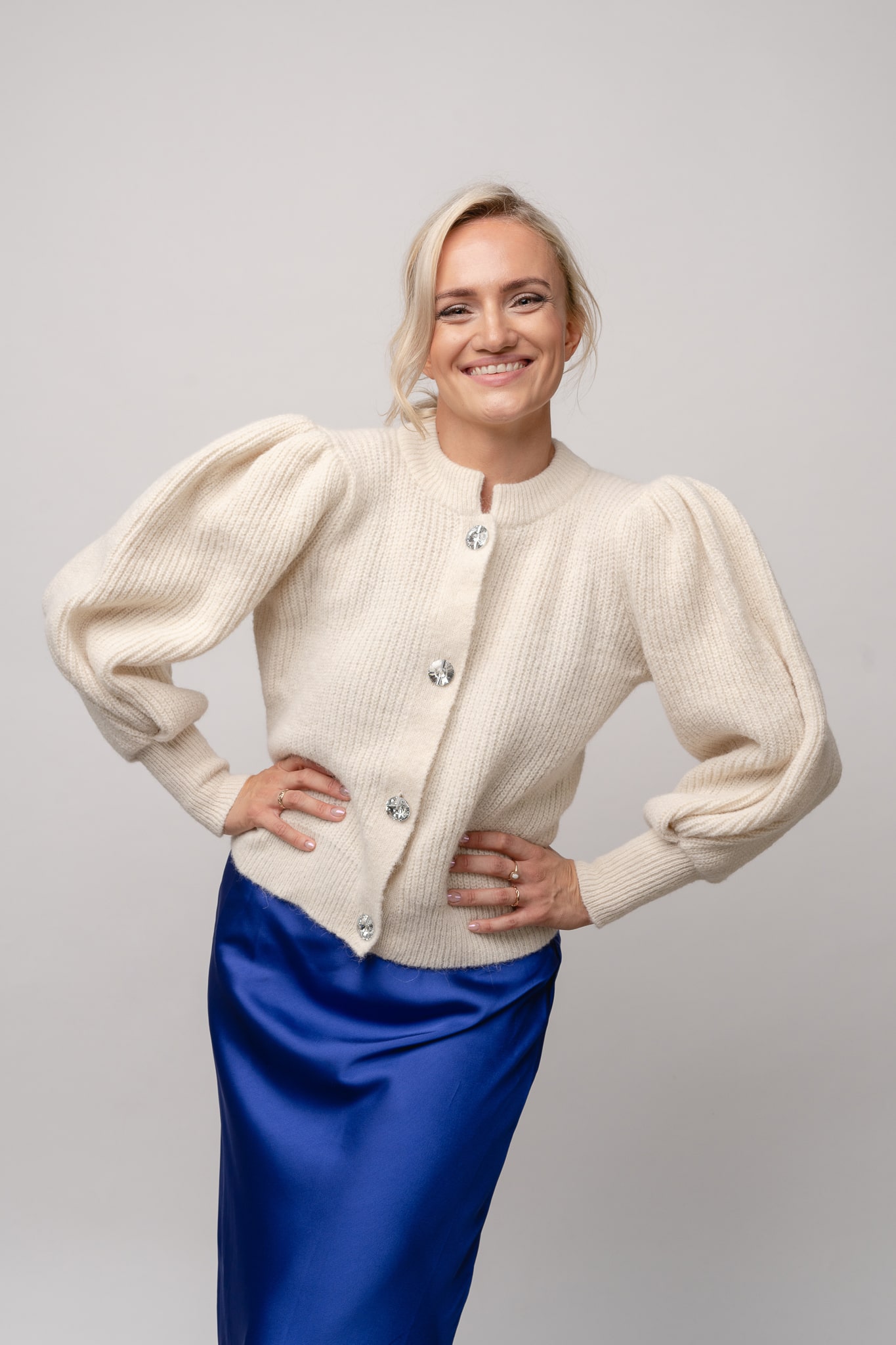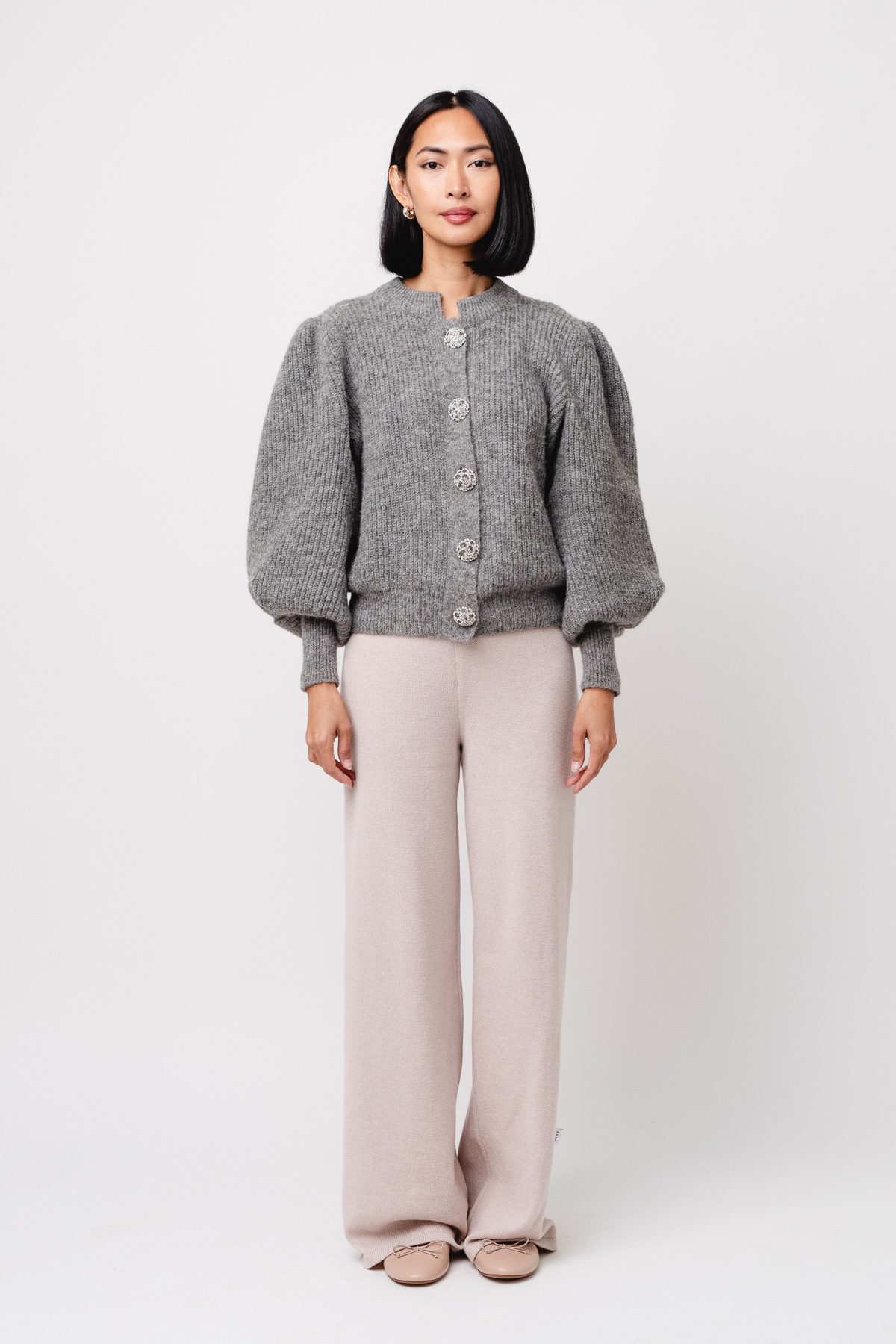 Hand made from alpaca blend yarn. Voluminous sleeves, shaped silhouette, finished with statement buttons.