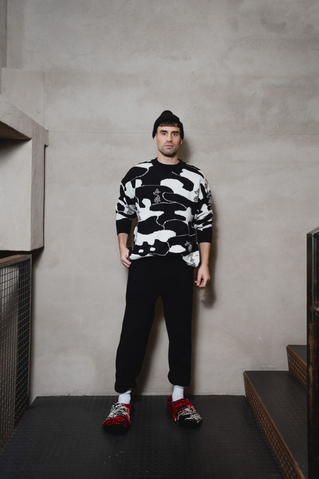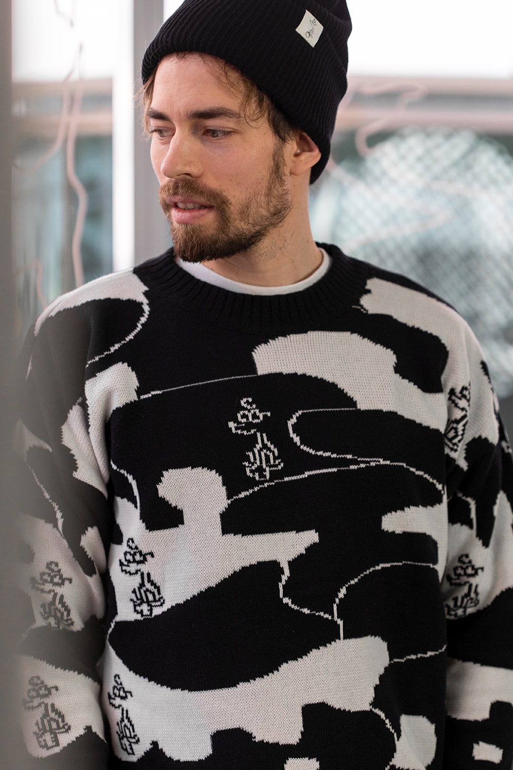 Hand made from extra fine merino yarn. A breathable, balanced layer between you and chilly weather. Not to be taken too seriously.