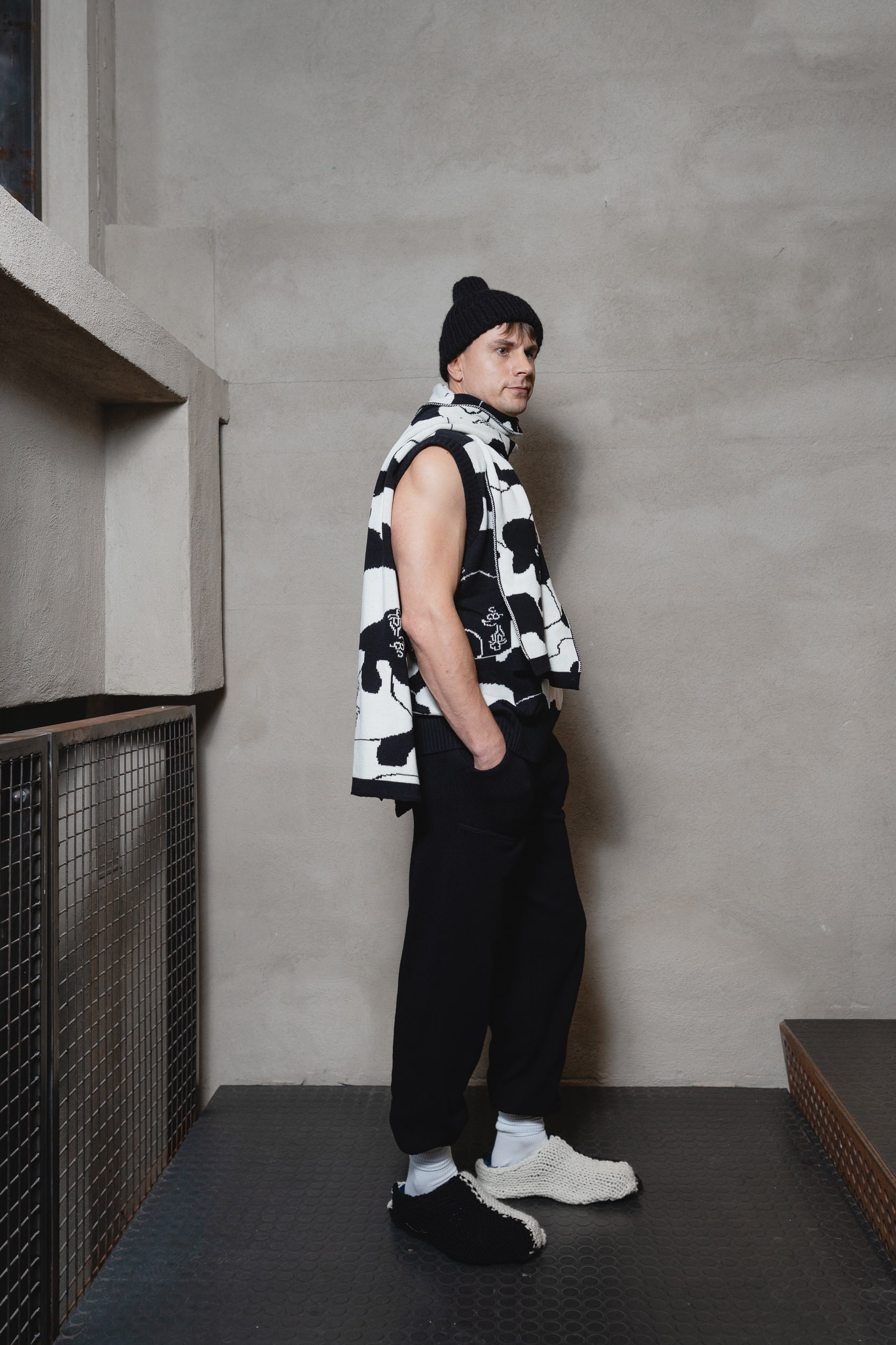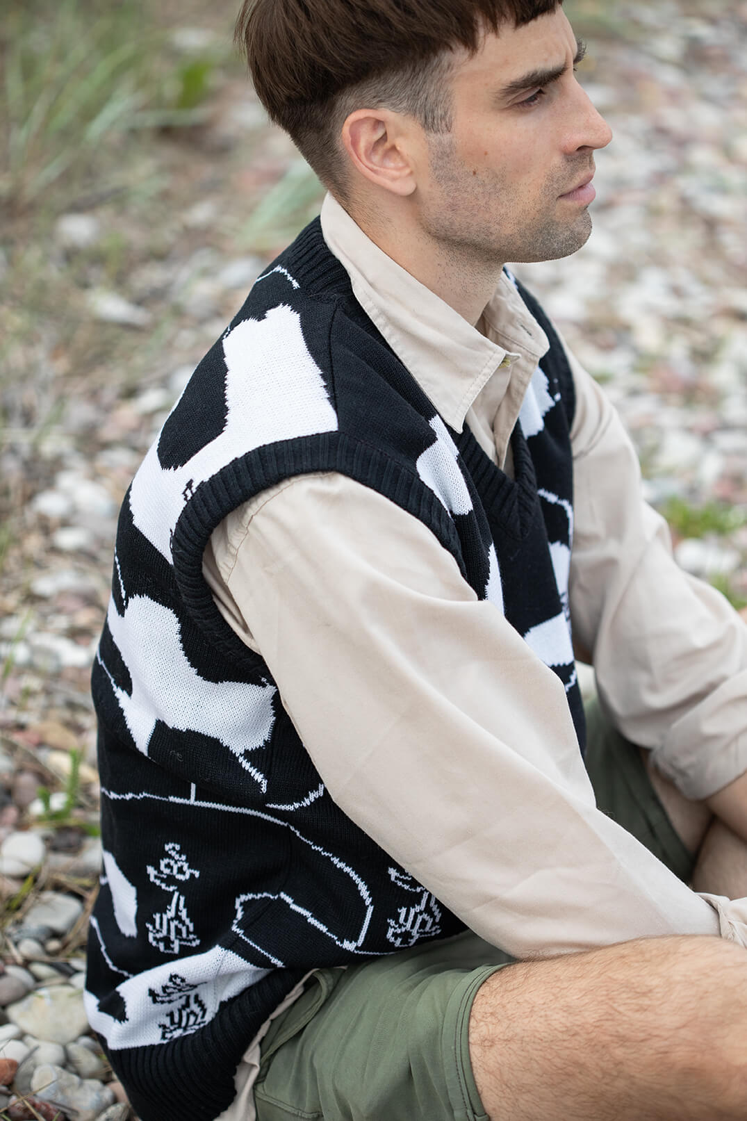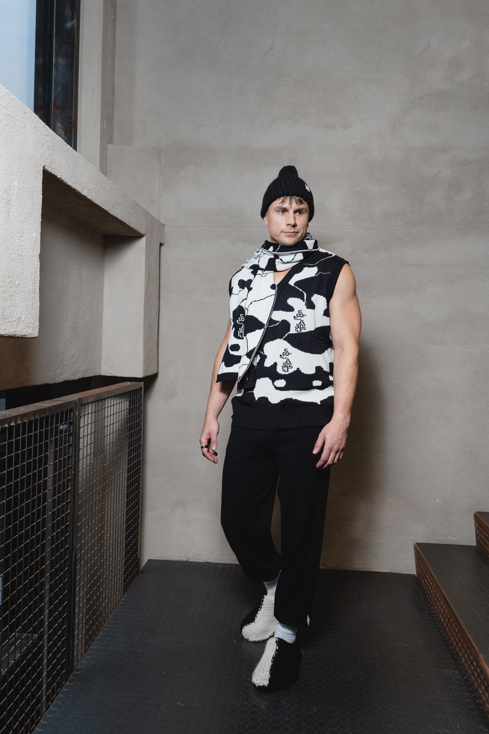 Hand made from extra fine merino yarn. A breathable, balanced layer between you and chilly weather. Not to be taken too seriously.