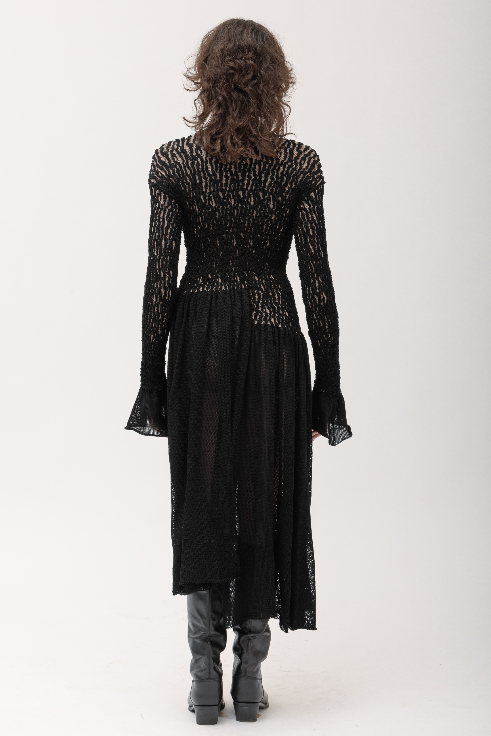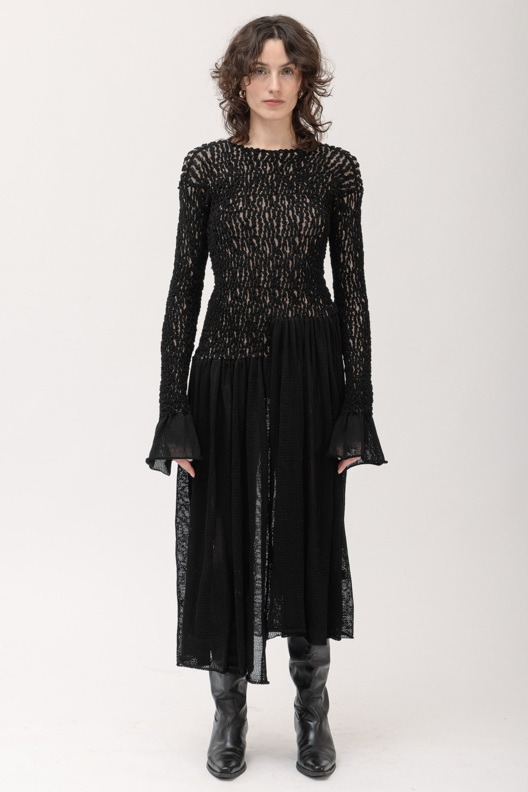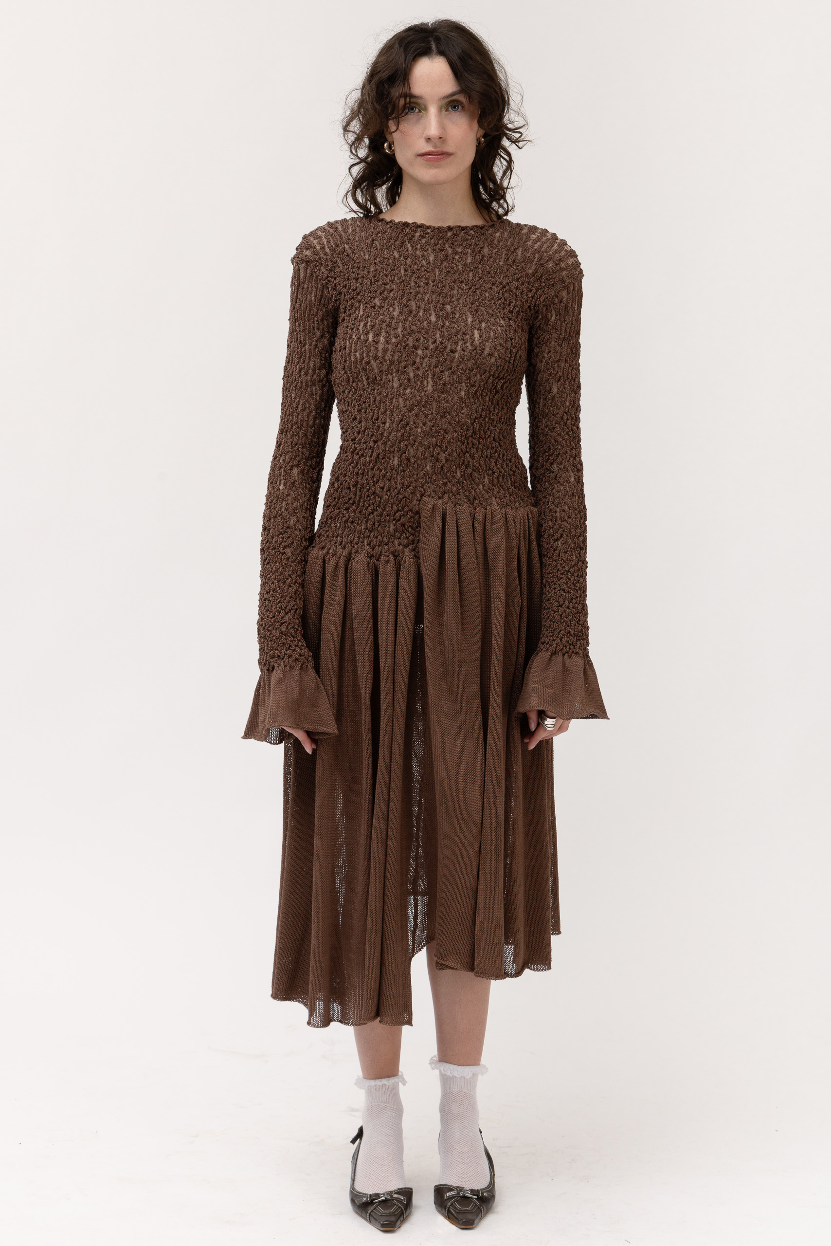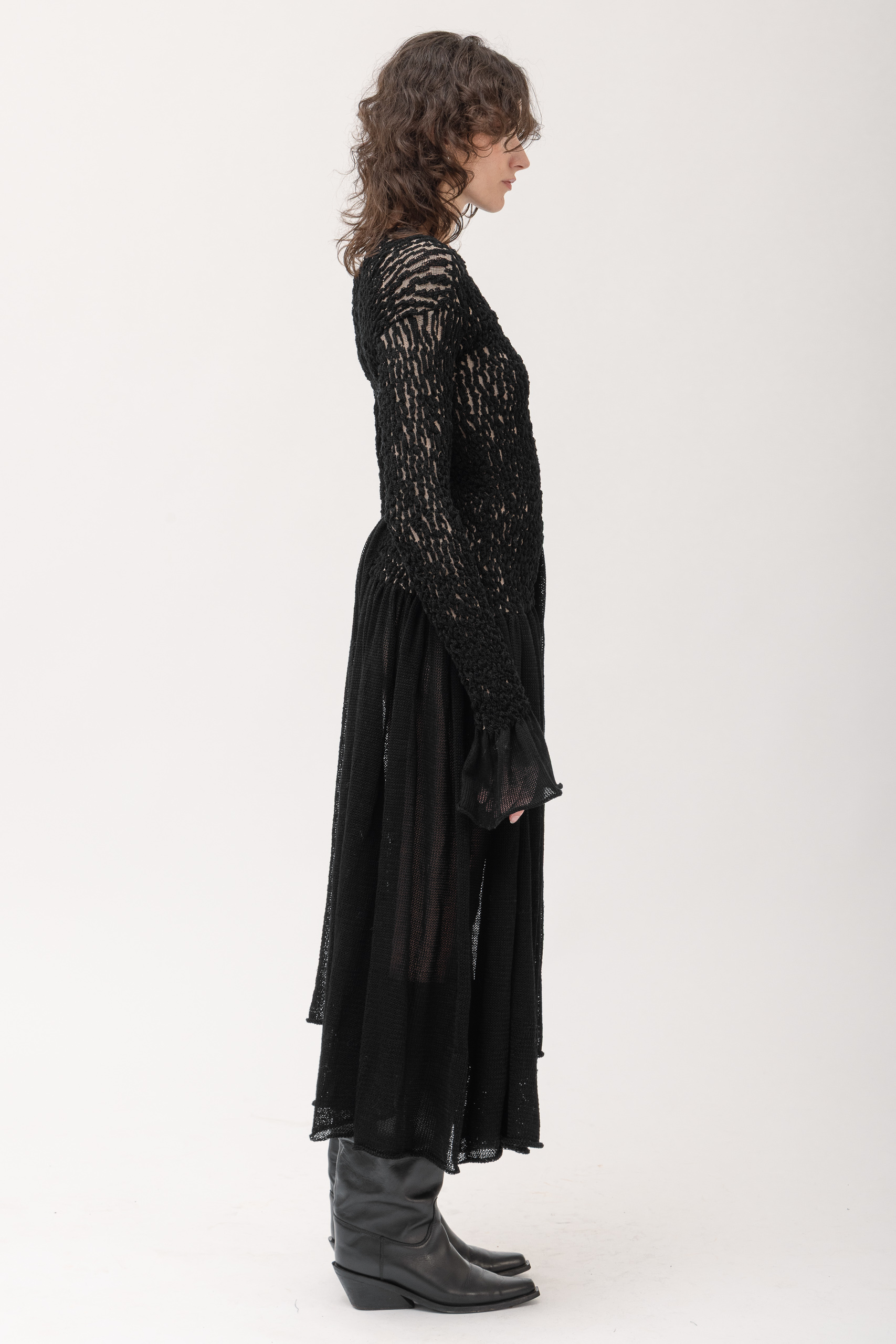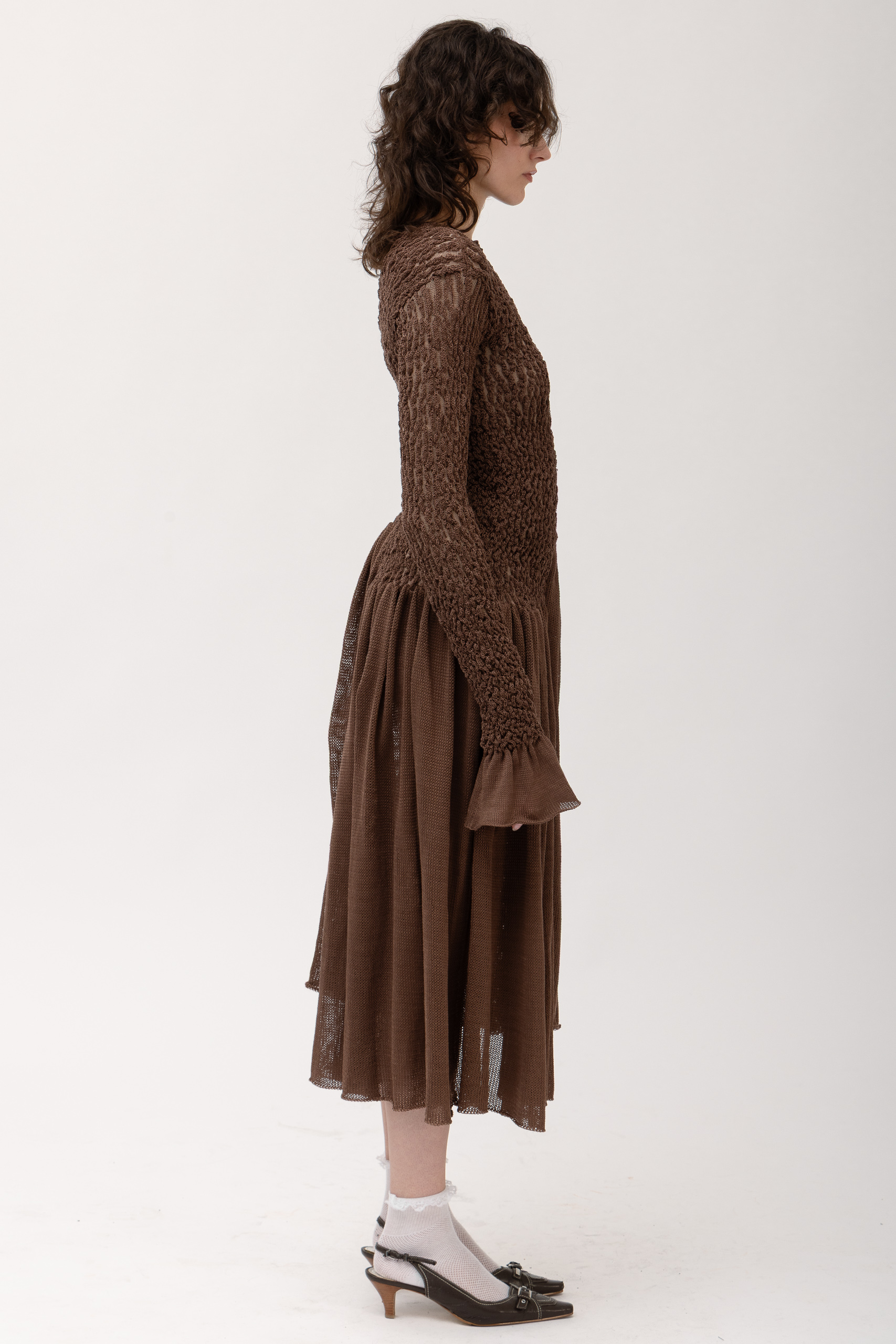 Hand made from organic cotton with stretch, shaping naturally as you wear it. A balanced silhouette that is fitted on top, and flowy at the hem.